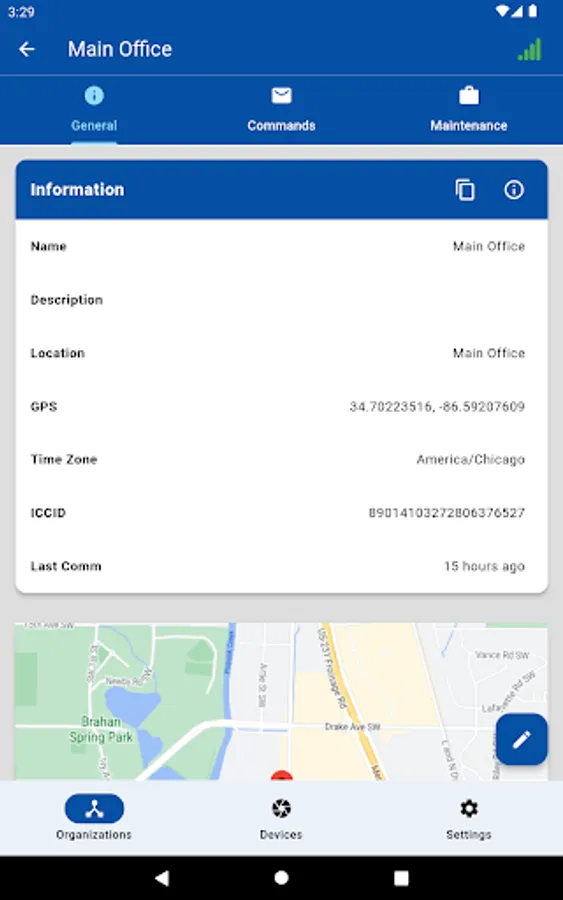 The user can manage & view schedules, manually turn lights and other attached devices on or off, view reports and alarms, look up any registered unit on the map, and get turn-by-turn driving directions to the location of that unit! The OutdoorLink® Control app also allows you to upload photos of an installation directly from your device's camera, and even tag a unit’s location using your device's built-in GPS!