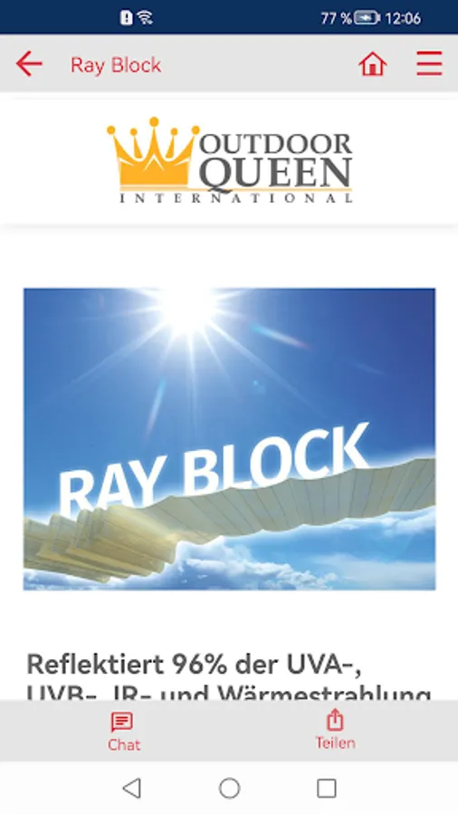 - Ray Block fabric: Reflects 96% of the sun's rays