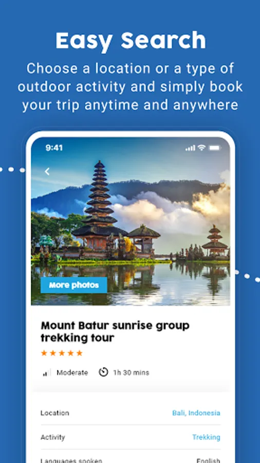 Download a travel app that will help you find your new outdoor adventures such as hiking in mountains, cycling, kayaking, tandem paragliding, canyoning, animal watching, rafting, dog sledding, polar expeditions, via ferratas, skydiving, city walk tours, and many others.