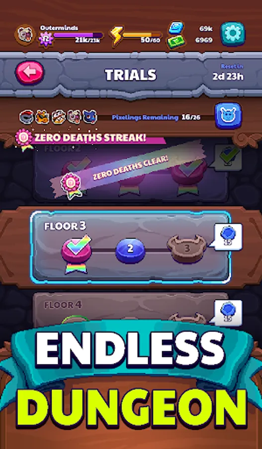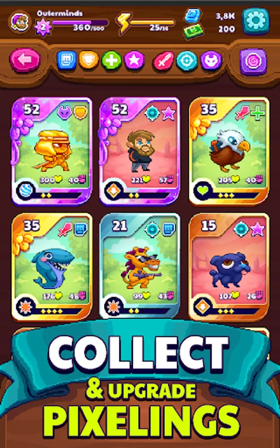 Unlock and collect over 30 hand-drawn pixel creatures, catch them all. Gather resources and manage them well to upgrade your creatures. Combine and unite heroes of different classes like fighter, rogue and mage to defeat your enemies with brute force, cunning and magic; the gathering of your team will define your strategy.