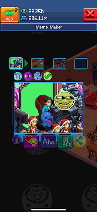 Immortalize funny moments with our Meme Maker! Use stickers and customizable text prompts to tell your story! Share your memes on social media directly through the game! Express yourself and show the world how funny you are! Use kittens to optimize your chances.