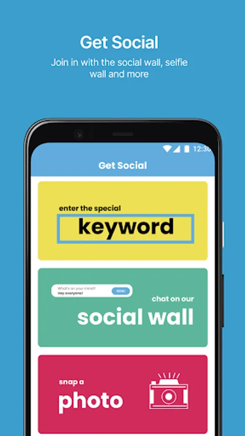 - Get Social with our integrated fun features like photo frames and social wall. You can also win a great prize with our Keyword quiz!