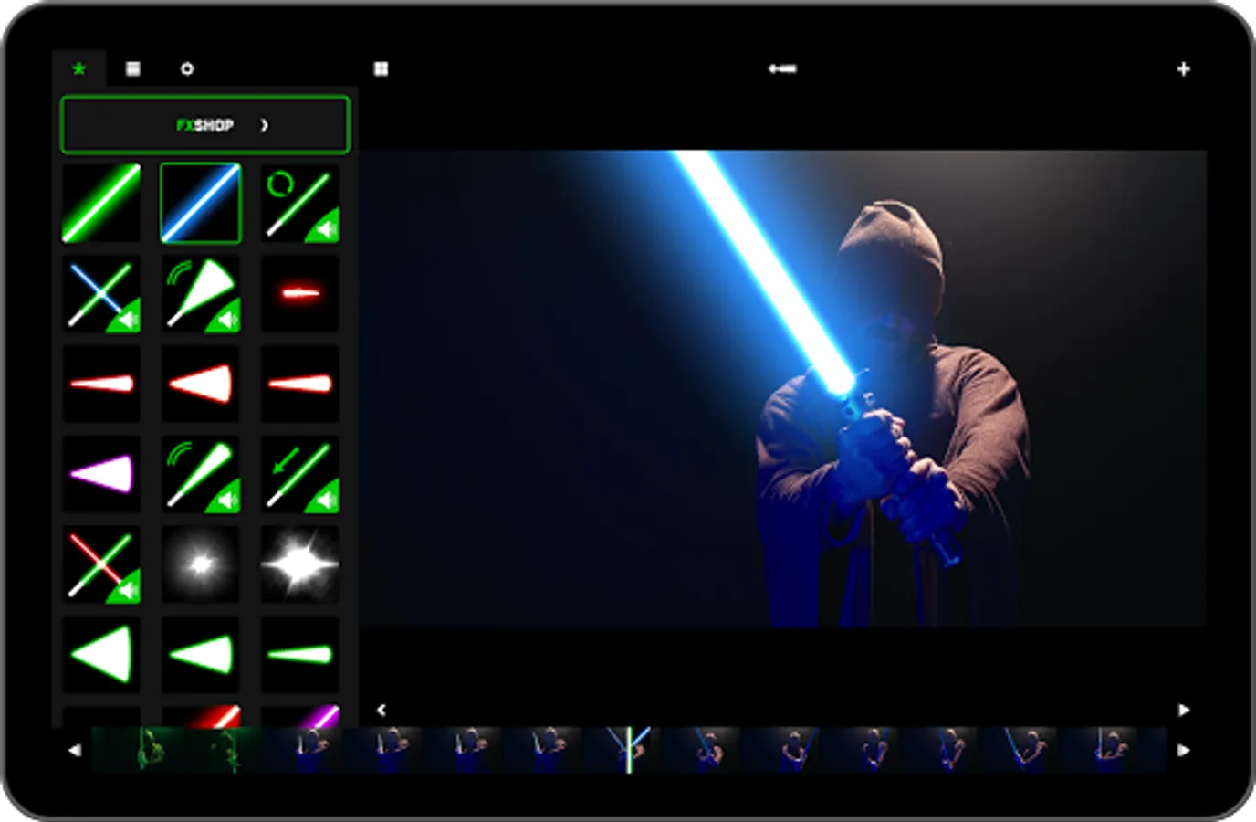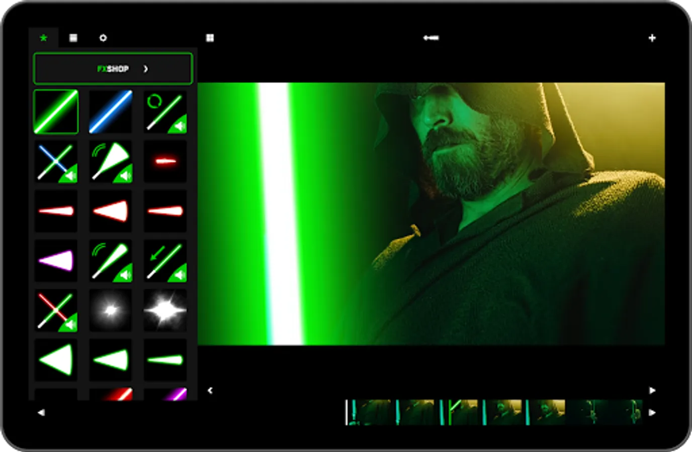 Saber Movie FX is the ultimate light saber video editing app. Rotoscope the included high quality saber effects over your videos to look just like the blockbusters!
