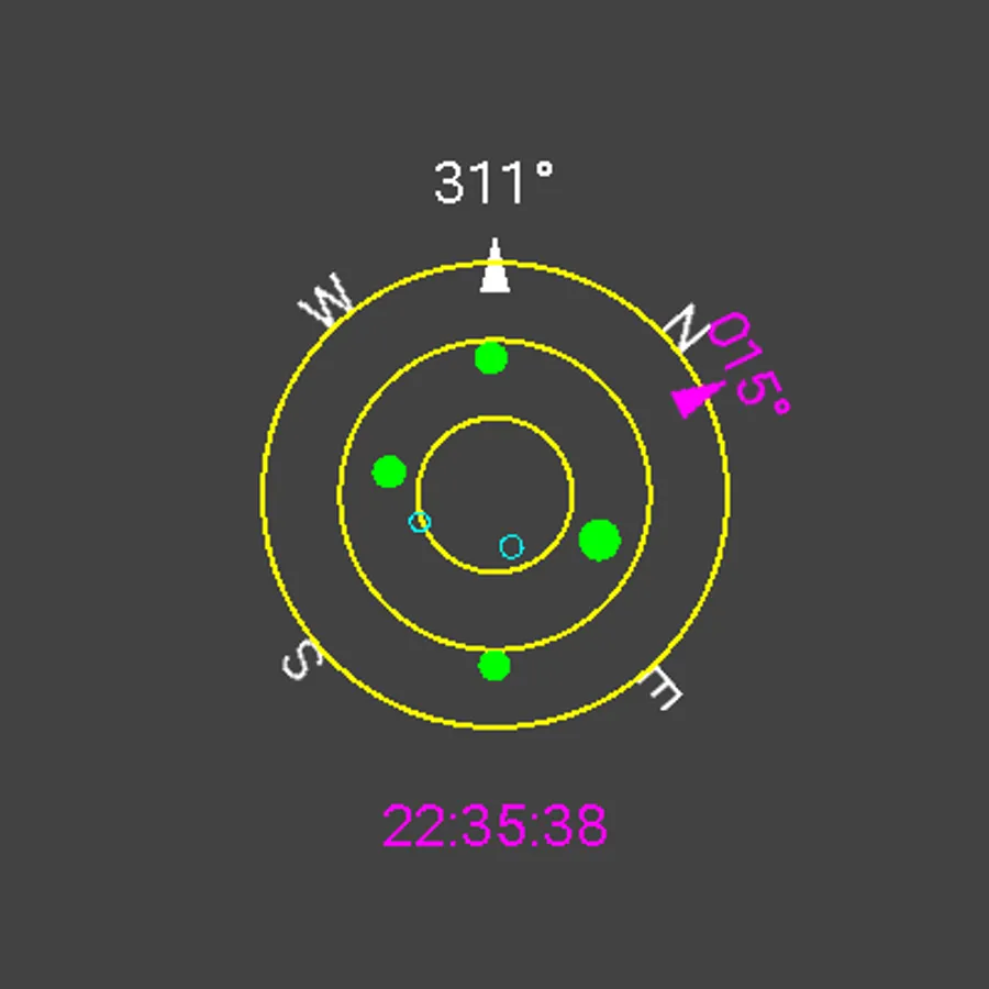 Displays a single screen with the location and strength of the GPS satellites seen by a Wear OS device. Also displays the compass reading from the Wear OS device.