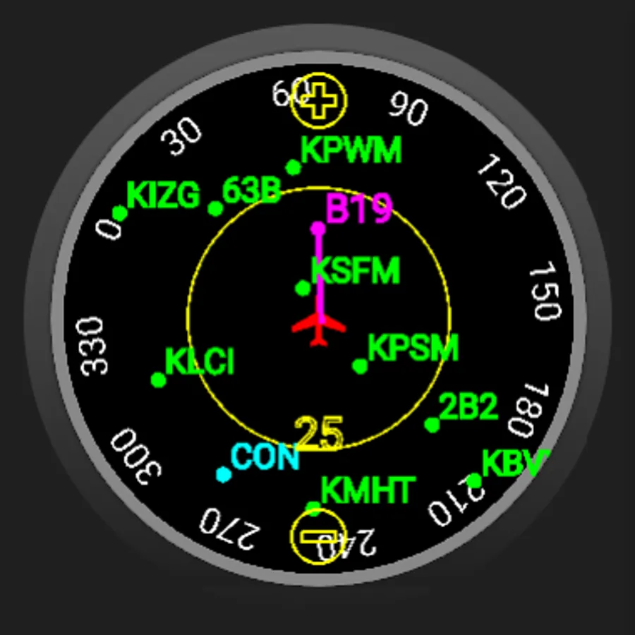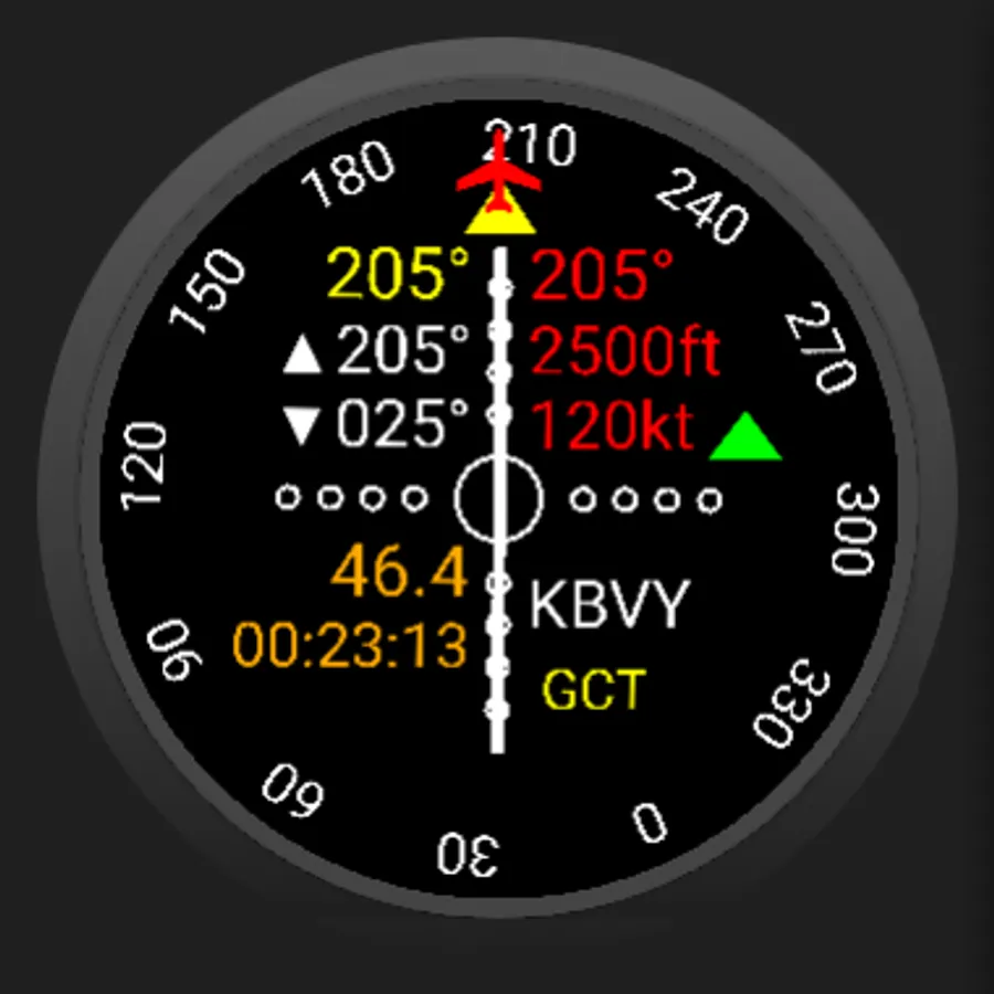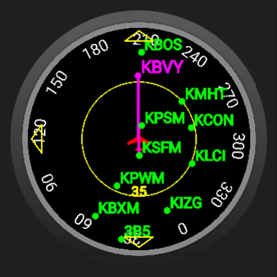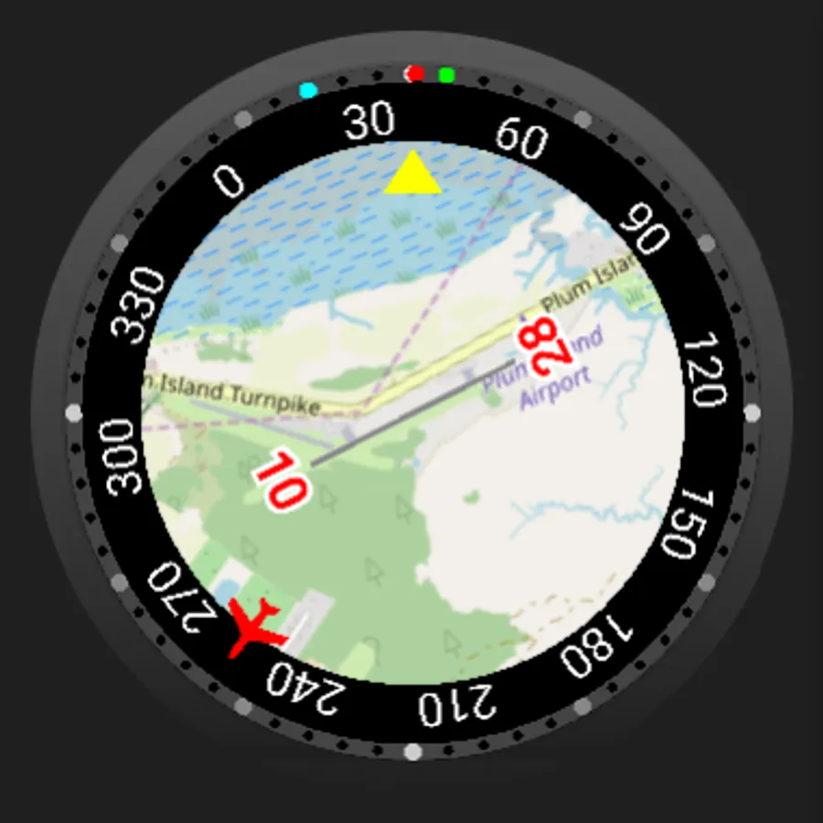 Runs on Wear OS device to give it an HSI-style dial to navigate to waypoints such as airports, fixes, localizers, VORs and NDBs. Also has basic moving map display, nearby airport list and airport information (frequencies, runway diagram).