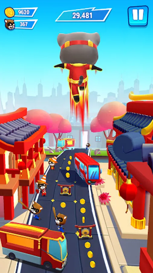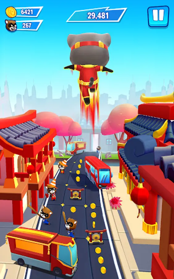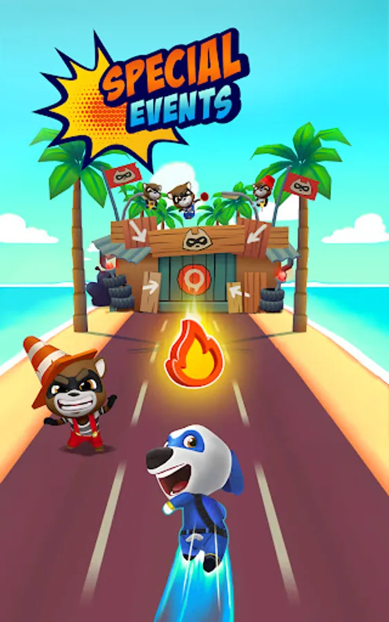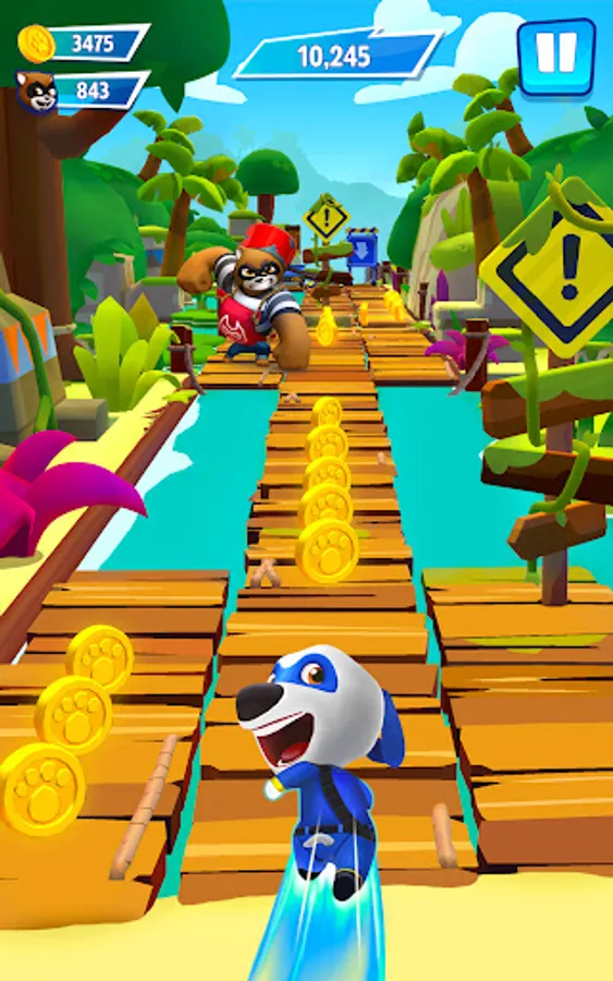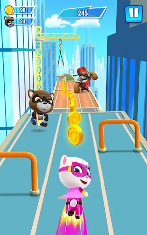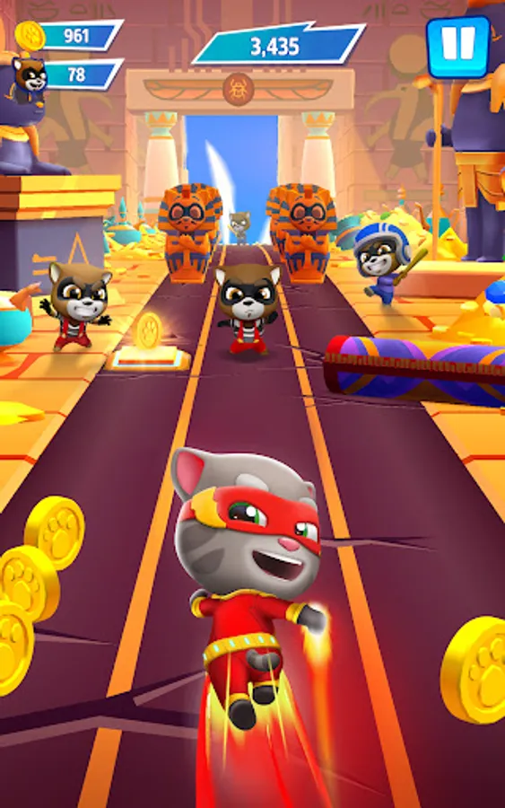 Talking Tom must run and chase down The Rakoonz and save the day. The Rakoonz have captured Angela, Ben, Hank and Ginger and it’s up to Tom to save them!