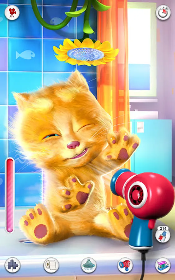Interact with Ginger! You can pet, tickle and talk to your funny friend. Turn on your microphone and say hello to Ginger. This cat loves to chat, he’ll repeat anything you say back to you in his own voice for fun!