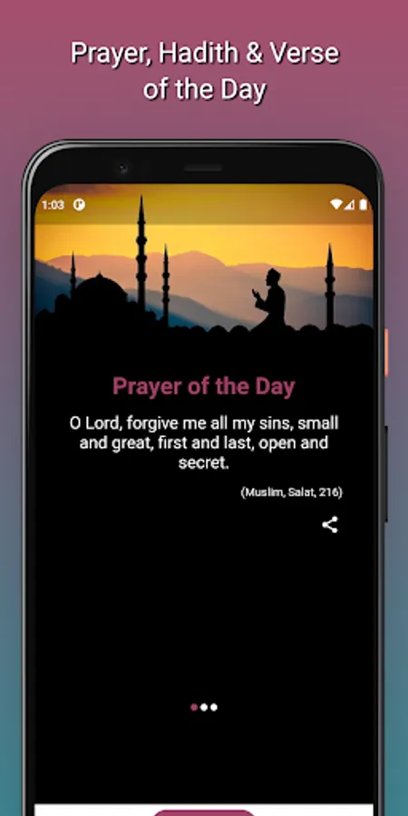 • Prayer, hadith and verse of the day.