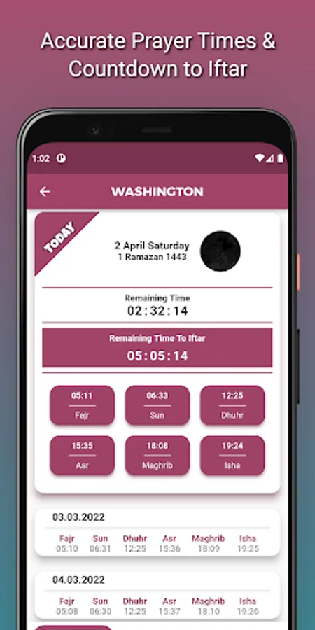 • Countdown to next prayer time