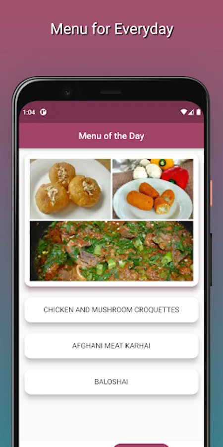 • Daily meal menu suggestions