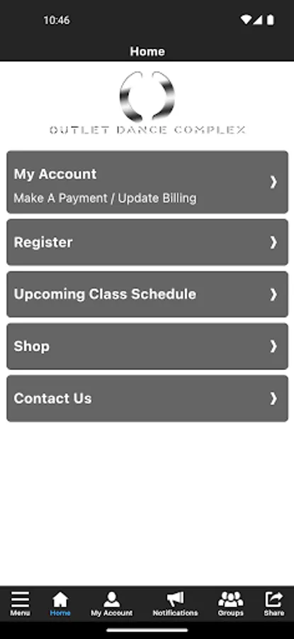 The Outlet Dance Complex app allows you to manage your account with ease, register for classes, camps, and special events. You'll also receive important notifications about class changes, closings, registration openings, special announcements, and upcoming events.