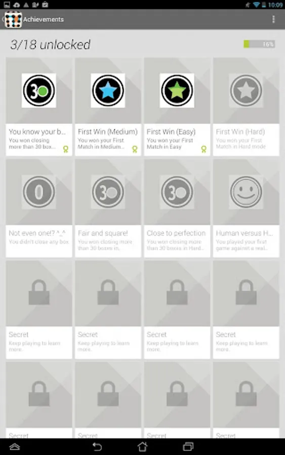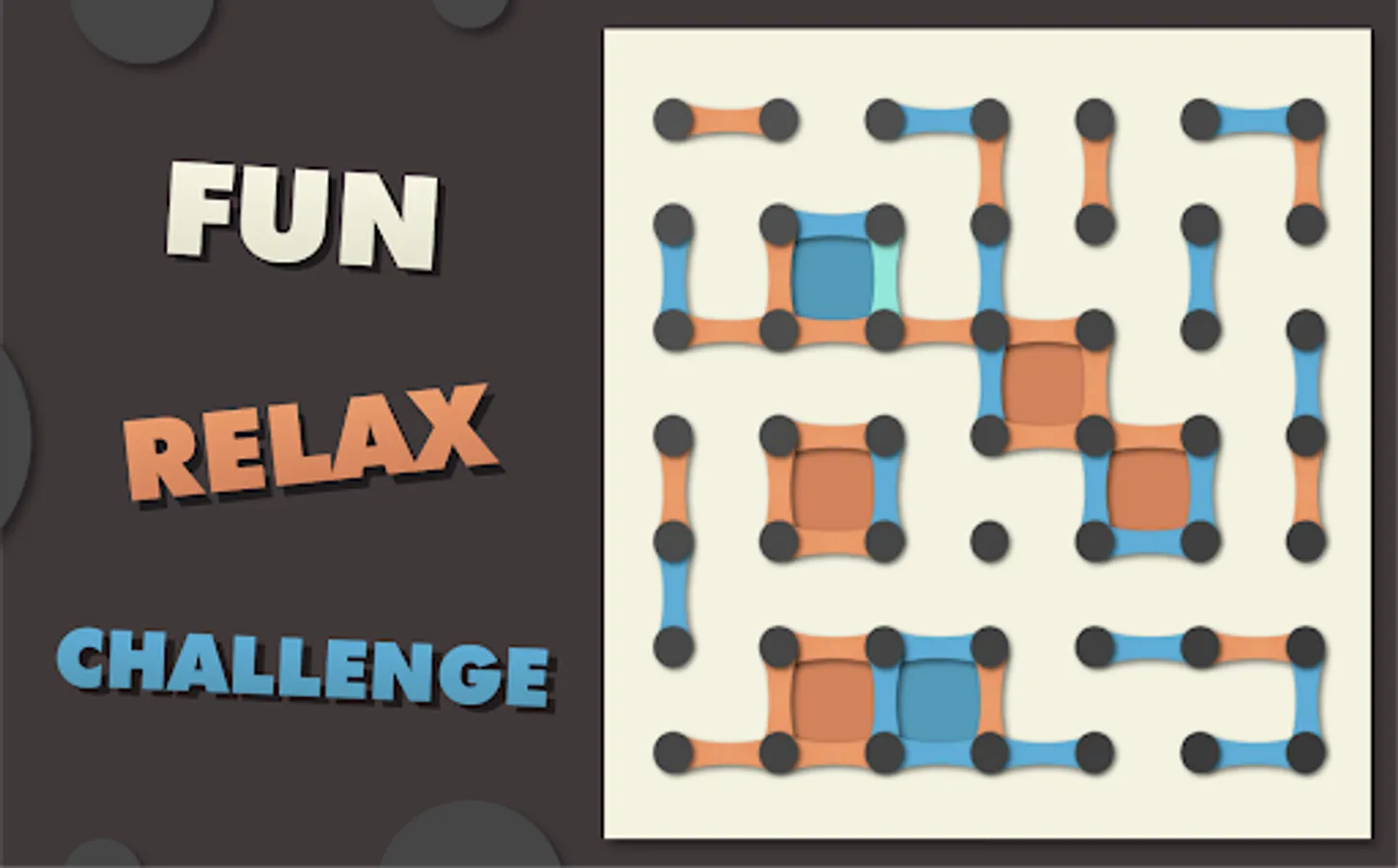 DOTS AND BOXES - CLASSIC BOARD GAMES will challenge you according to your abilities, with 3 difficulty levels, and it’s easy to get: tap on the dots to draw lines and close squares. You’re the winner if you got more squares than your opponent when there's no more lines to trace.