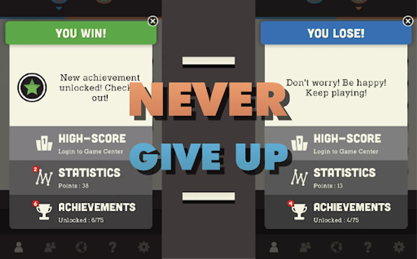 Play ‘solo’ or against a real opponent using either our local or online multiplayer mode; play with a friend on the same device or find an opponent from anywhere in the world.