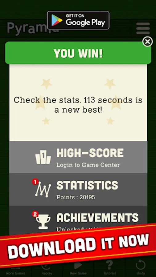 Relax, clear the Pyramid and get rewarded with tons of achievements, great animations and points for your leaderboards.