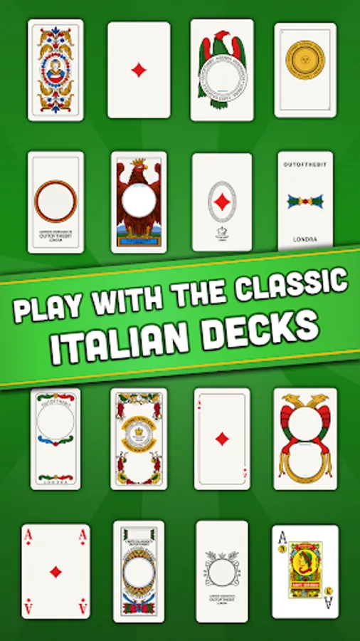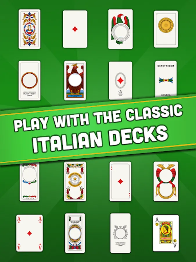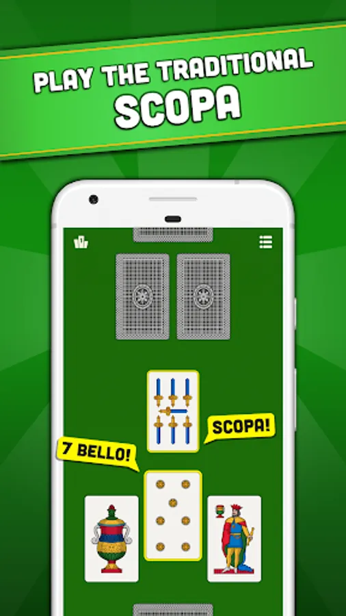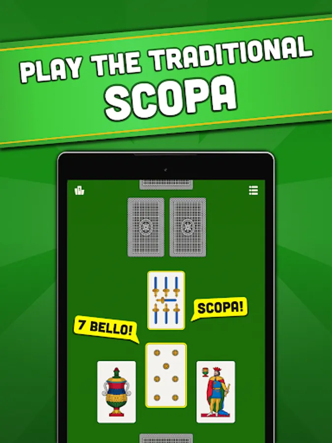 - Choose your deck: Scopa got all the original Italian regional decks (Napoletane, Siciliane, Piacentine, Piemontesi, Triestine and more), in high resolution that will look astonishing on your phone and tablet Android. Or you can play with the classic Poker cards!