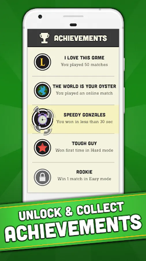 - Choose your level: 3 difficulty modes against the computer (A.I. artificial intelligence)