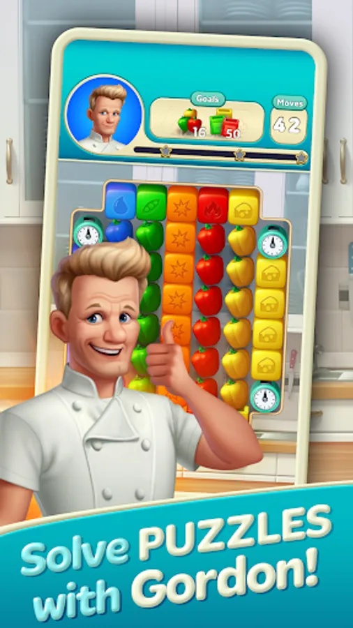 Blast your way through Gordon Ramsay's puzzle game to turn a kitchen nightmare into your dream kitchen! Tap to match and blast blocks as you gather ingredients to make delicious dishes! Customize your kitchen as you progress through challenging levels, earn game cash to renovate and decorate your space, choose new chef avatars and build your collection of exclusive Gordon Ramsay recipes!