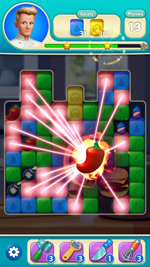 - BOOST YOUR BLASTING SKILLS– Match blocks to create explosive boosts and blast through the board! Colorful fire peppers and bombs will help you win and unlock ingredients to use in Gordon's favorite dishes!