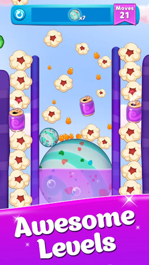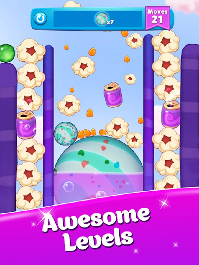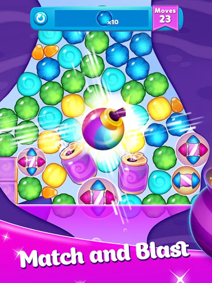 Blast into a new candy matching adventure! Satisfy your sweet tooth by collecting all the candies in this sugar rush puzzle games. Treat yourself to hundreds of fun, confectionery-filled levels with different goals – smash soda cans, collect gummy sweets, and crush delicious jawbreakers! Take a trip to this exciting candy land bubble pop games.