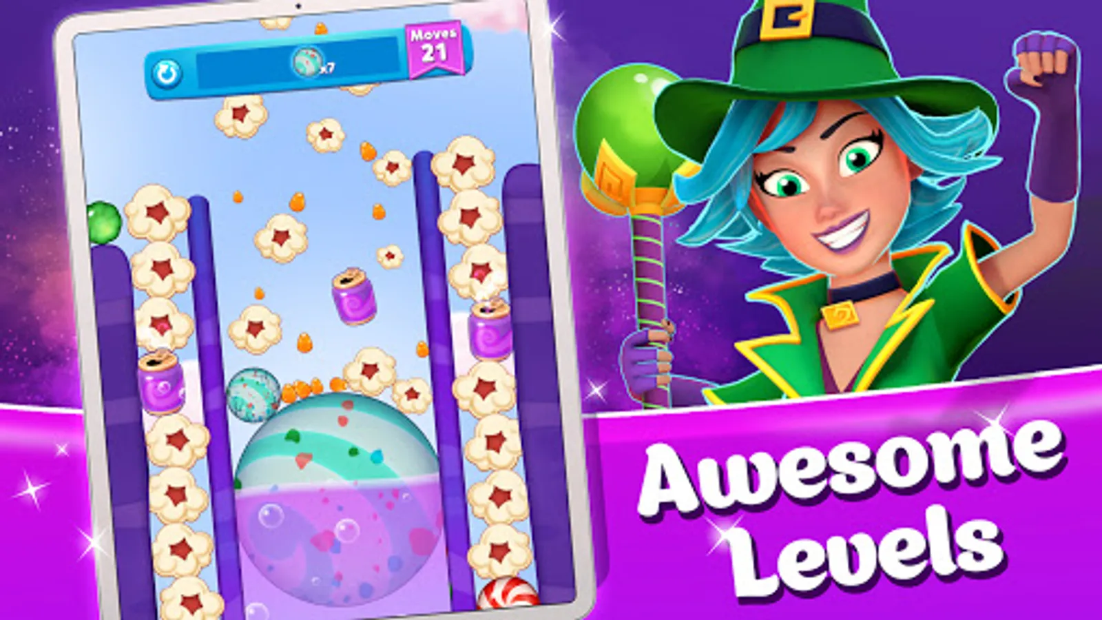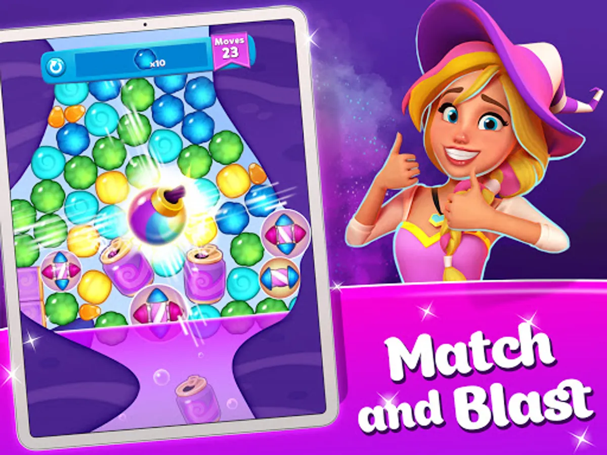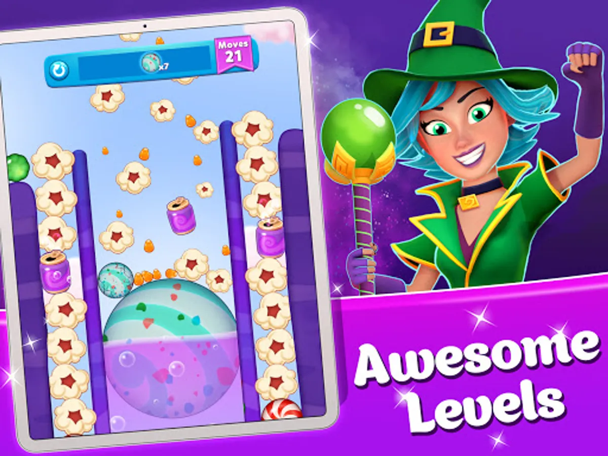 Join the candy witches Candice and Trixie, and their cute cat Cookie! Burst delicious treats with their magical witch games spells as you encounter sweet surprises. Enjoy an amazing puzzle game with a whole lot of colorful candies and sugar popping excitement.
