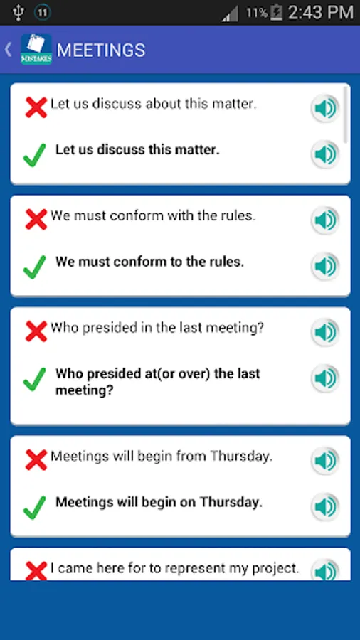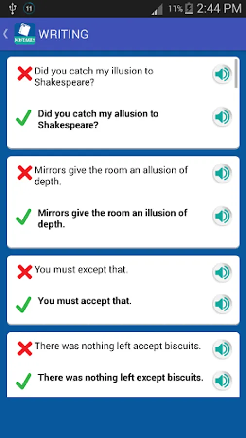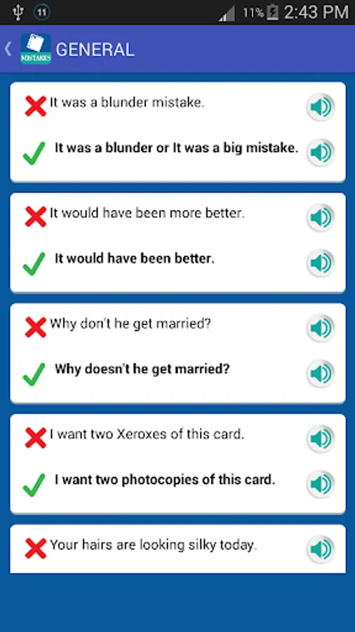 Remove mistakes from your english and improve your english with the help of this app and get red of Common Mistakes In English. It will help to improve your english vocabulary and will help you to learn english.