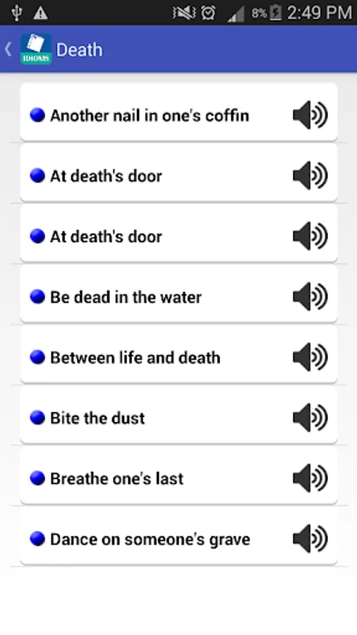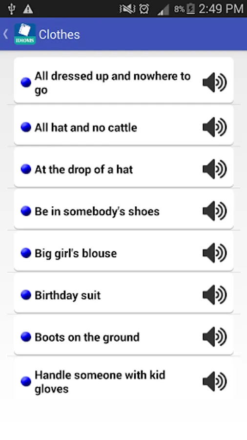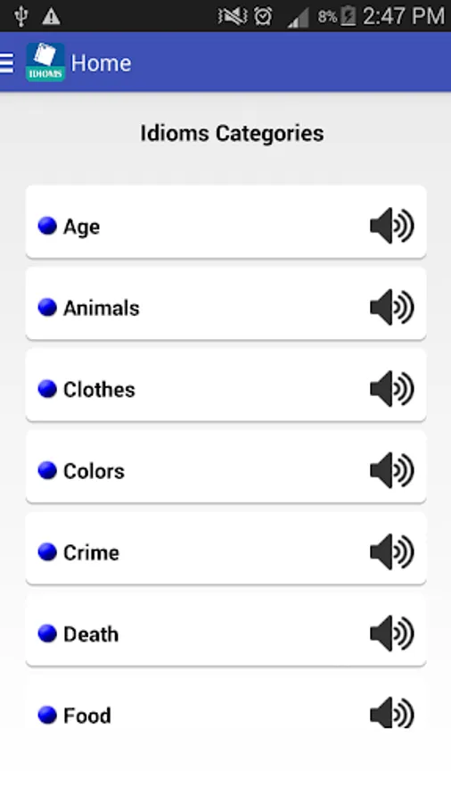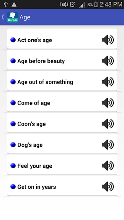 English idioms is a very helpful app. With idiom you can learn Idioms , Phrases and Proverbs in English very easily and effectively. It has lots of idioms and phrases.