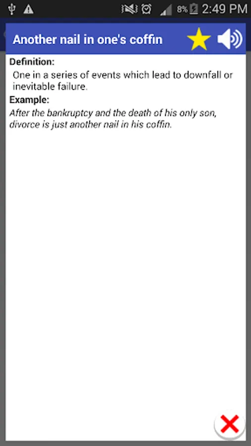 This is a simple english grammar book app lists the English idioms and Phrases, idiomatic expression, proverbs and many more