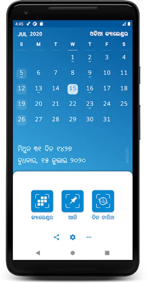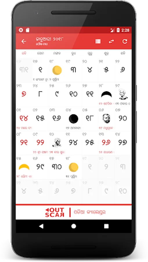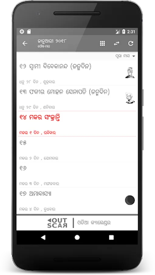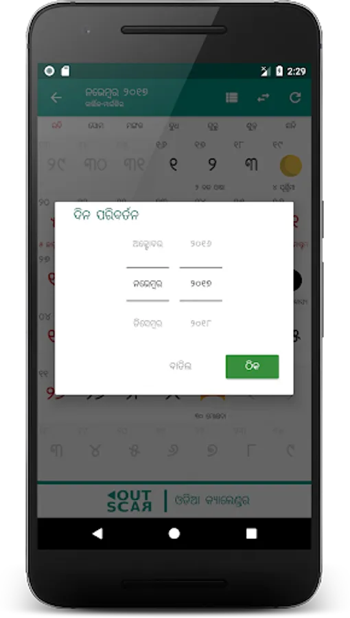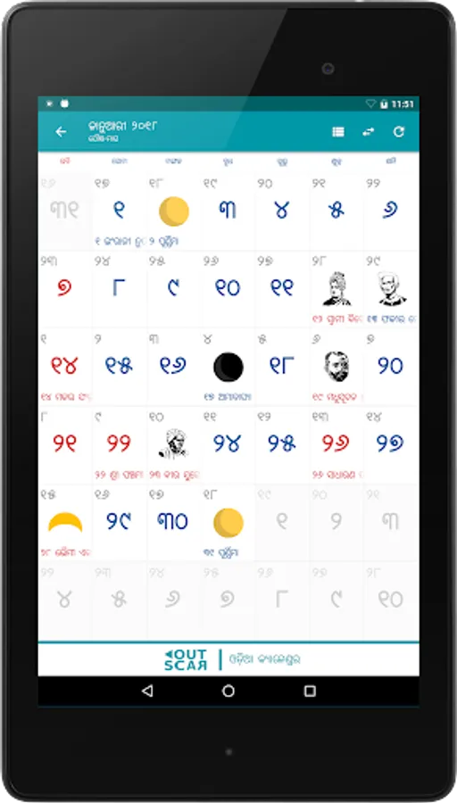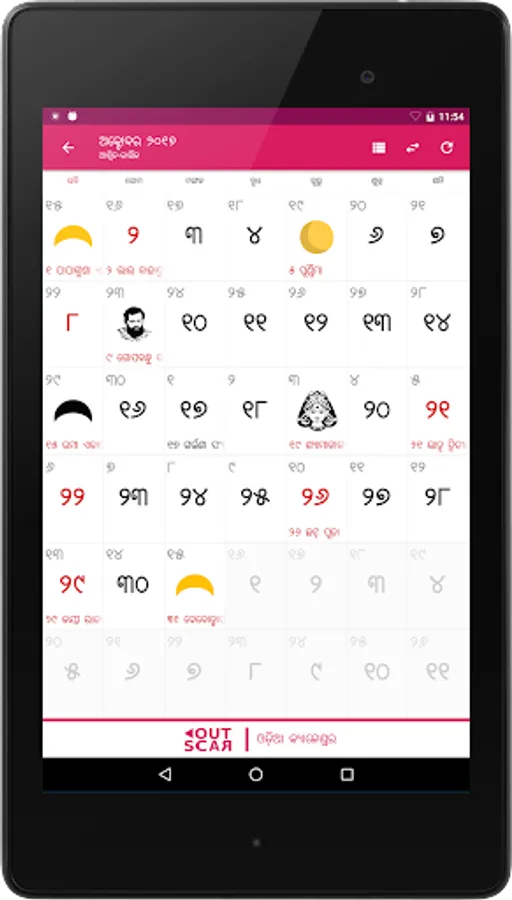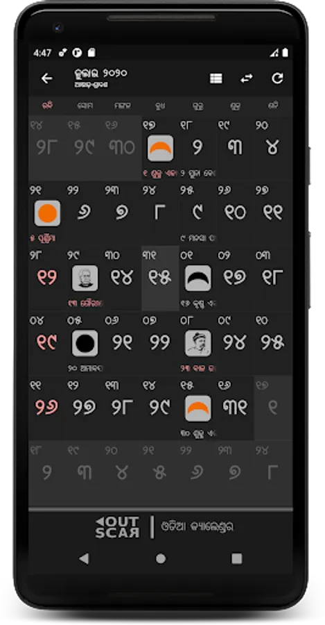 Outscar Oriya (Odia) Calendar , a complete and simple Odia pocket calendar for your android device .