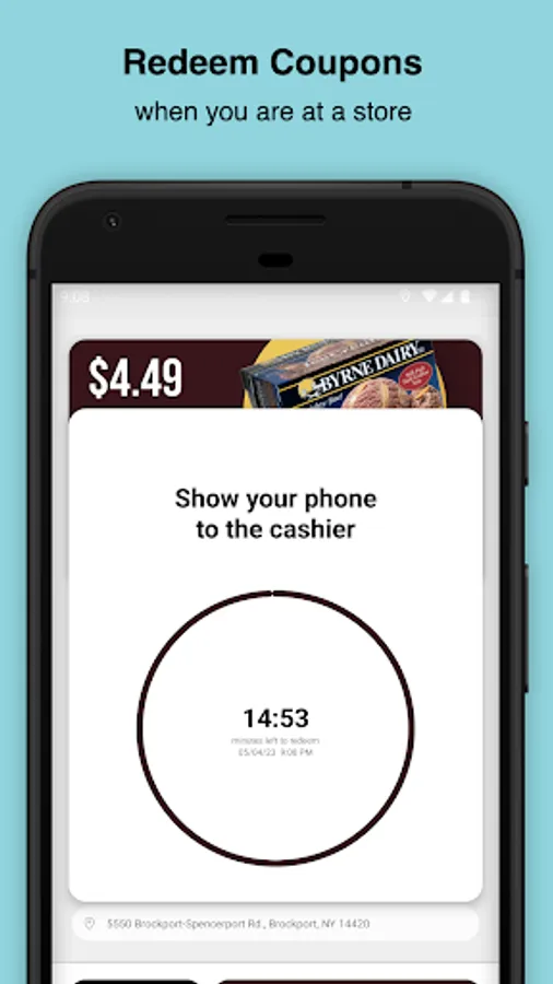 Simply tap the redeem button and show your phone at purchase to redeem your coupons.