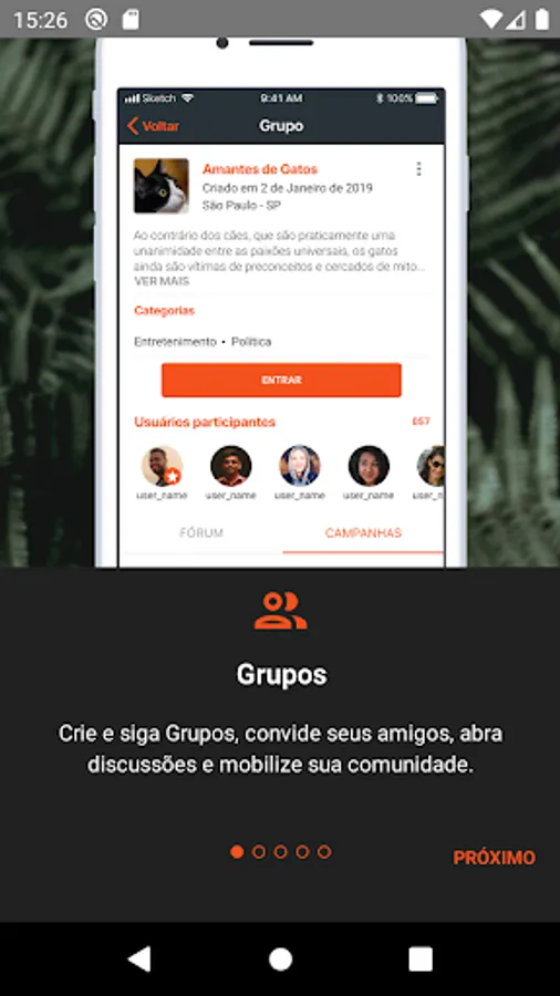 Would you like to put an idea into practice and need to engage others to cooperate? Create campaigns with your proposal, refer the groups that you follow and interact to ensure that it is approved and accepted by group members.