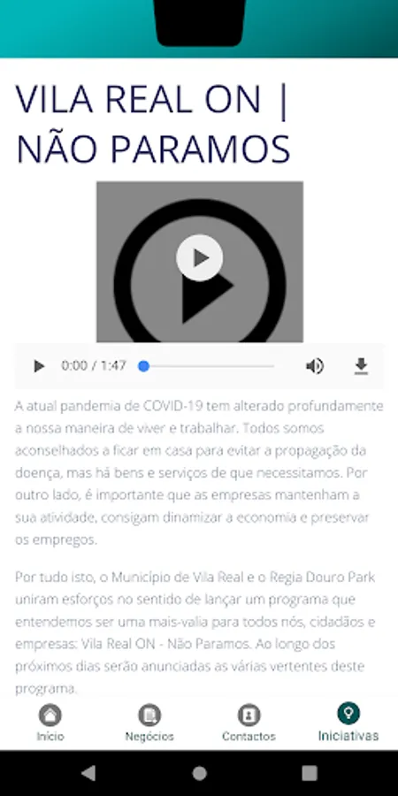 For all these reasons, the Municipality of Vila Real and the Regia Douro Park joined forces to launch a program that we believe will be an asset for all of us, citizens and companies: Vila Real ON - Não Paramos. Over the next few days, the various aspects of this program will be announced.
