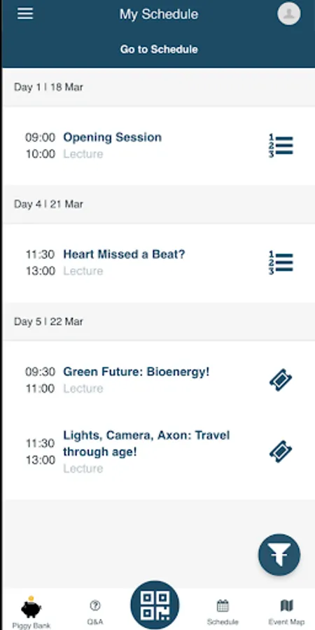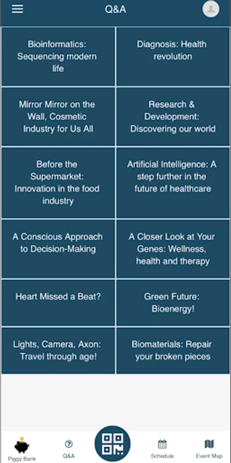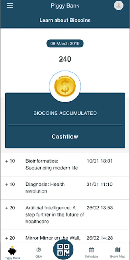 The Semana da Bioengenharia app allows you to have everything you need, right in your pocket! You can consult the event's schedule and manage your own, read all about the invited speakers and even ask them questions during lectures. Moreover, it has a Piggy Bank, responsible for keeping your biocoins, which may get you a prize at the end of event.