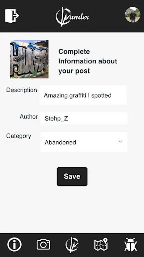 Wander is a social media application that seeks to unite struggling urban artists with the urban tourism market, by providing a simple, user-friendly environment to seek out and discover new places and new sights to see.
