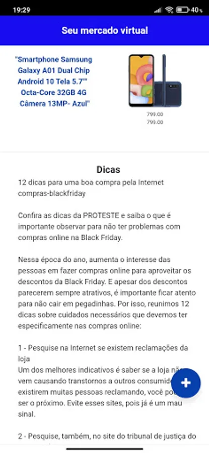 Here you will have access to the largest retail stores and online commerce in Brazil, have all the features to take advantage of all the offers on the internet, after all we have so many options in our App that you will see that our prices are always the best.
