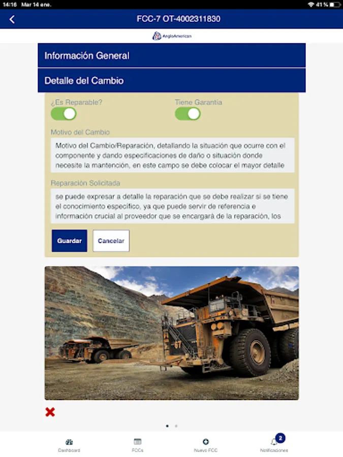 Demonstration of the APP Component Change Form for AngloAmerican for the Chile Mine and Plant Repair Team