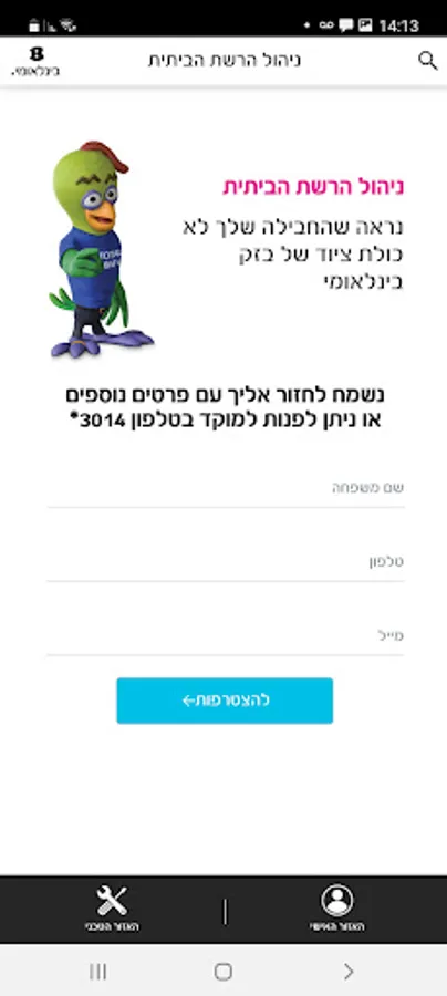Bezeq International's application, B International, centralizes all the relevant information and services for you, and allows you to perform a variety of self-service operations, all quickly and easily: