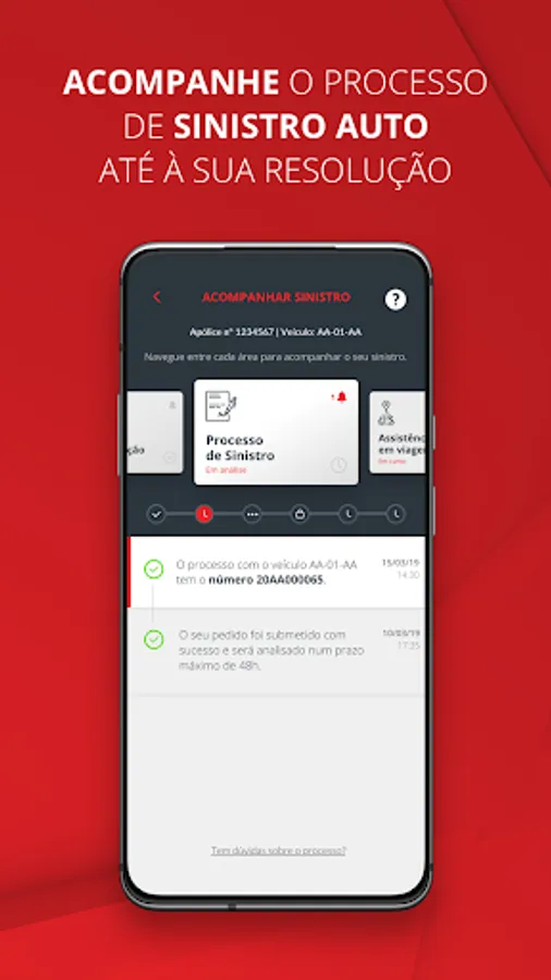 • Monitoring of Car Claims: you can understand all the stages in the resolution of a claim, what stage your process is in (expected response times) and also reschedule or cancel the inspection of your vehicle.