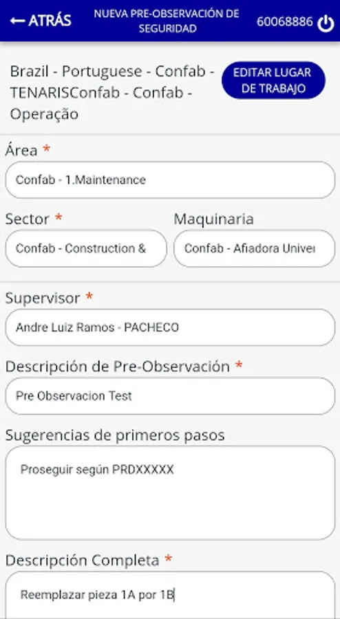 - Safe Hour (SH) / Safety Observations: Functionalities for registering Safe Hour Inspections and Safety Observations