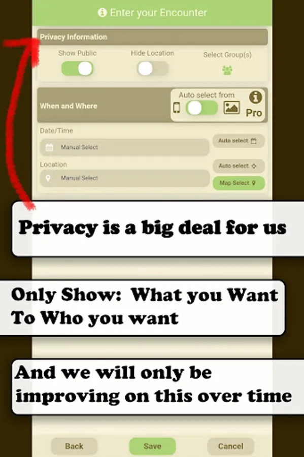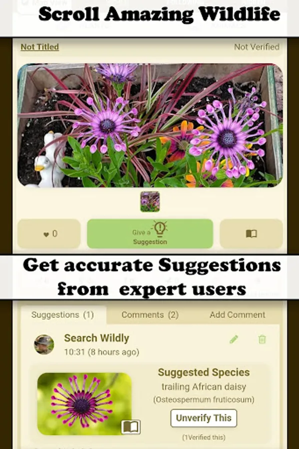 By being logged on you can upload Wildlife encounters, Share to the world or just to one of your groups. Get likes, Comments, have other users submit Suggestions to your unknown encounter! and so much more.