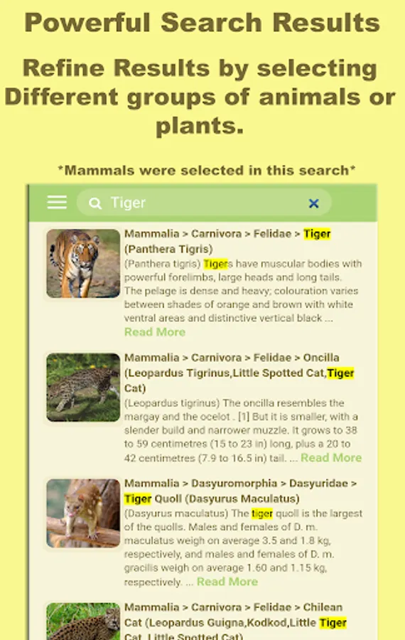Refine - Select a group of plants or animals and the search bar is customised to search JUST through those Plants or animals!
