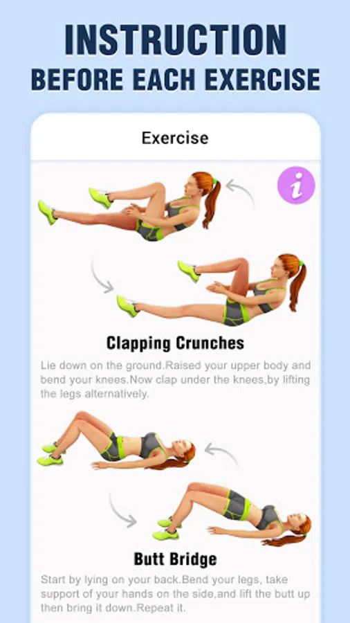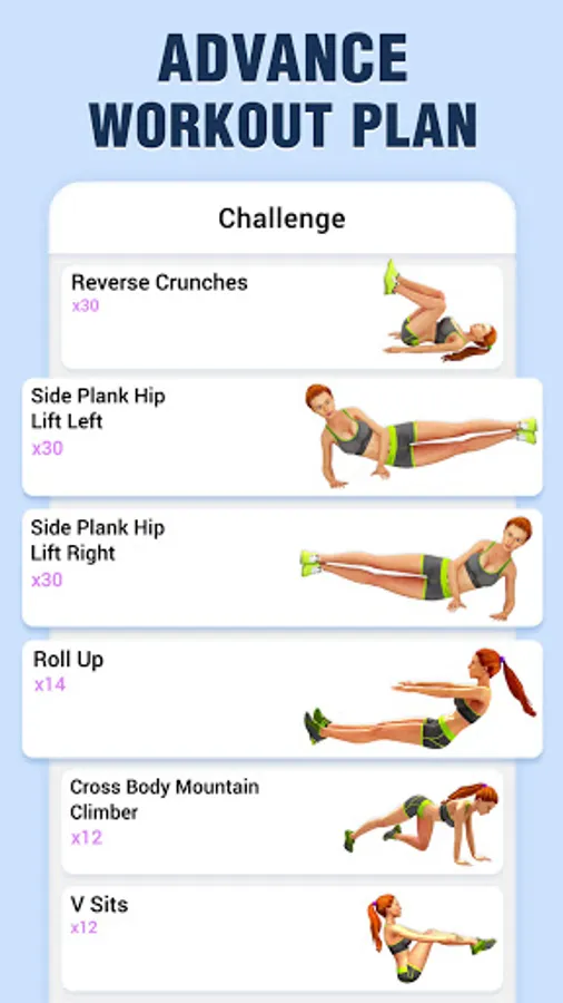 Abs workout for women app includes each day's exercises for beginners and advanced exercisers to get flat abs. Abs workout app has a description of how it should be performed and also the duration, in this abs exercise app for girls, after every 3 days of workout, you have a rest day.
