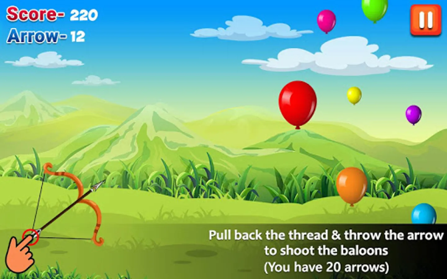In this balloon game, you get 5 arrows to shoot the balloons, if the target is missed then you lose one arrow.