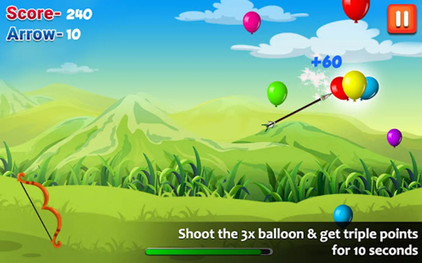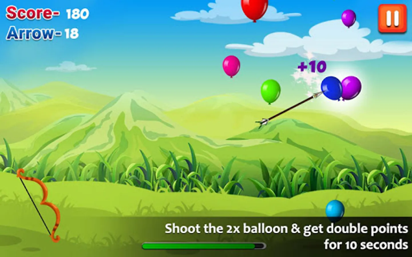 Balloon shooting is an archery game, in which you can shoot balloons of different colors in the air, using a bow and arrow.