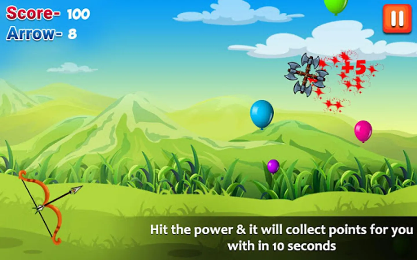 Enjoy shooting the balloons in an outdoor environment by playing this archery game. Shooting the big balloons will fetch you less points, whereas shooting the smaller ones will fetch you more points in this arrow shooting game. Blast multiple balloons at a time, by shooting the elements like crossed axe and chain ball in this bow and arrow game offline.