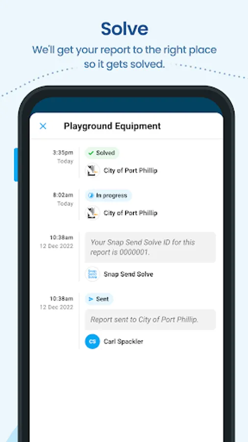 Your reports are instantly sent to the responsible authority with the necessary details for a speedy Solve. No need to know who to contact, then wait on the phone or write long emails.