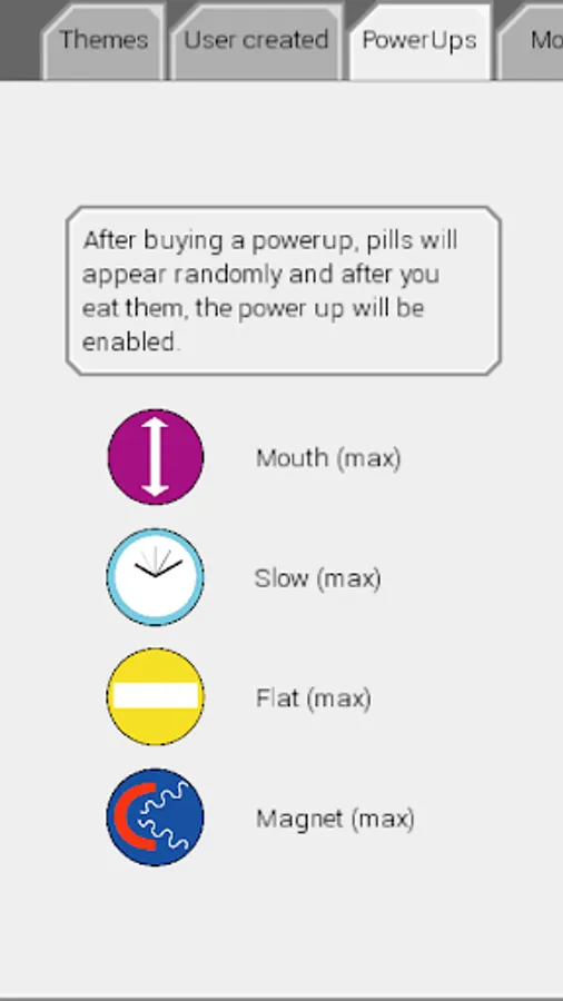 - Power ups that help you reach further distances (Flat, Slow, Magnet and Mouth)