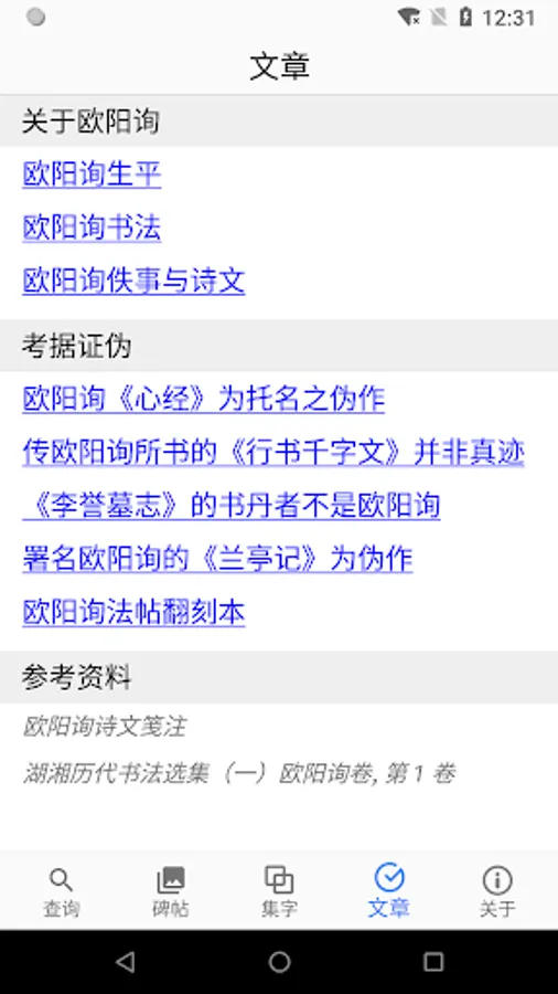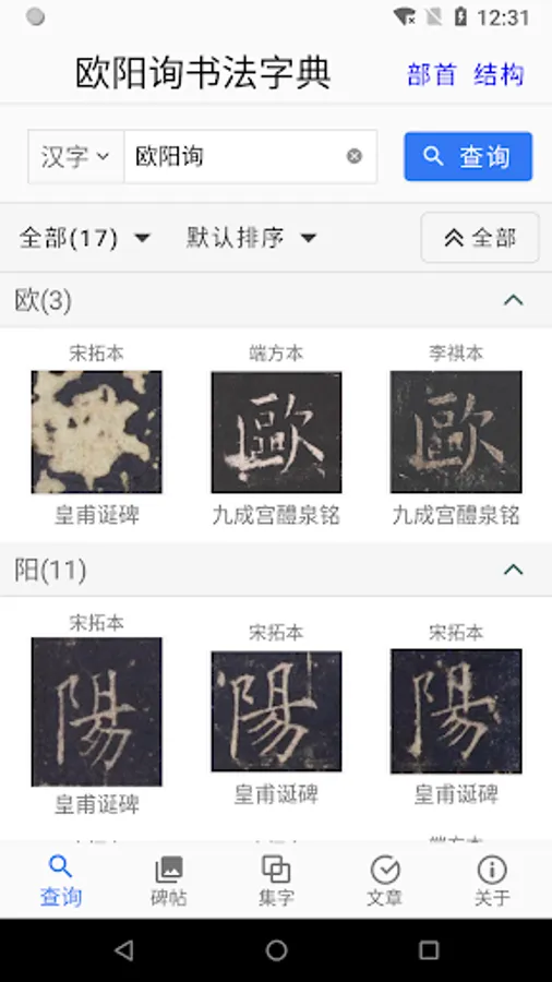 The dictionary collects the classics handed down by Ouyang Xun, and conducts the textual research of false works, and introduces reference rubbings that have a relationship with the Oushu. It is a good dictionary for European learners.