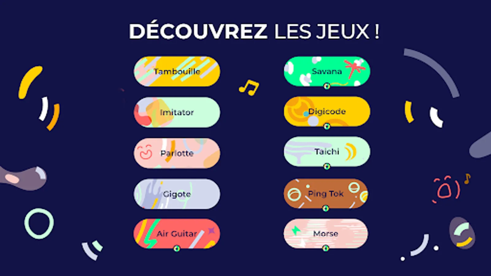 - IMITATOR: we memorize the musical models and replay them with the joysticks. Challenge your ear!