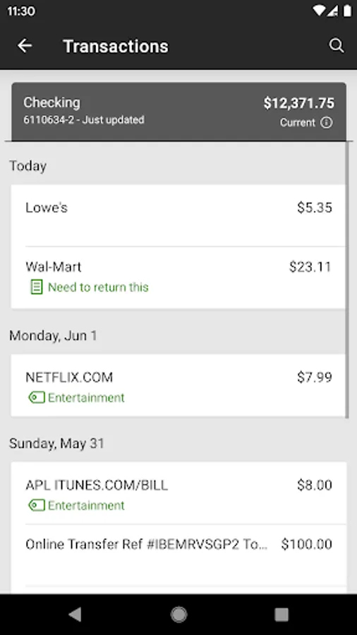 Add Tags, Notes, Images & Geo-Information: By enhancing transactions with custom tags, notes or photos of a receipt or check, you have the ability to stay organized and find exactly what you’re looking for when searching through your finances.