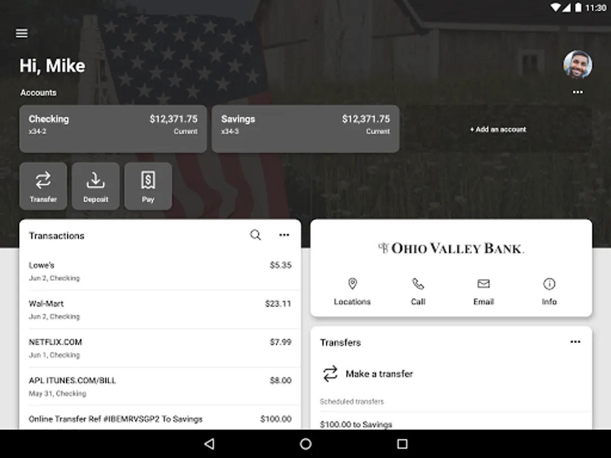 Contact: Locate ATMs or branches and contact Ohio Valley Bank customer service directly from the app.